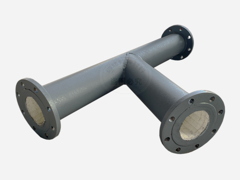 耐磨陶瓷貼片三通內貼陶瓷是用耐高溫無機粘合劑將以AL2O3為原料,以稀有金屬氧化物為溶劑,經1730℃的高溫燒結、保溫三個小時制成的特種氧化鋁陶瓷粘貼在管道內壁,經加溫固化后形成牢固防磨層。